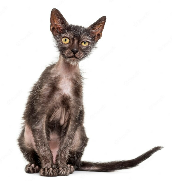 라이코이 고양이는 원래 털이 부족한 유전적 특성 때문에, 전체 몸에 털이 고르게 분포하지 않습니다. 얼굴, 다리, 귀 등의 부위에 털이 적을 수 있으며, 이러한 부족한 털은 그들의 독특한 외관의 원인 중 하나입니다.